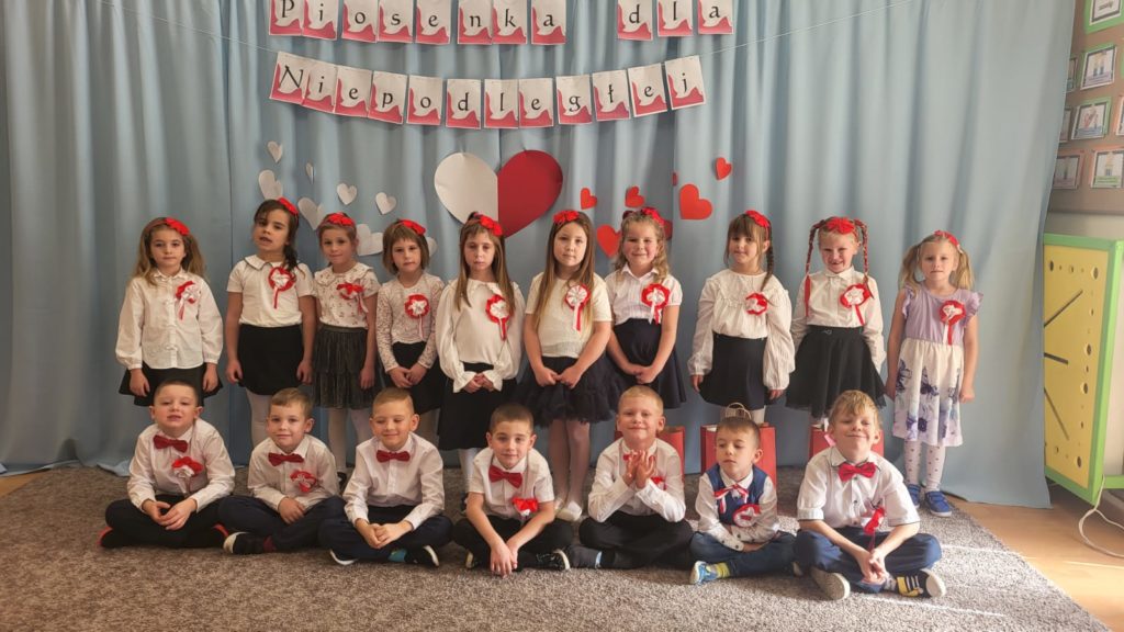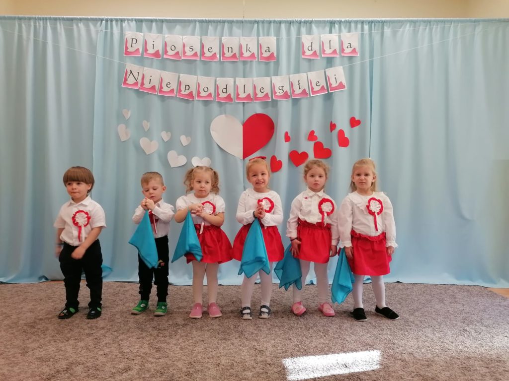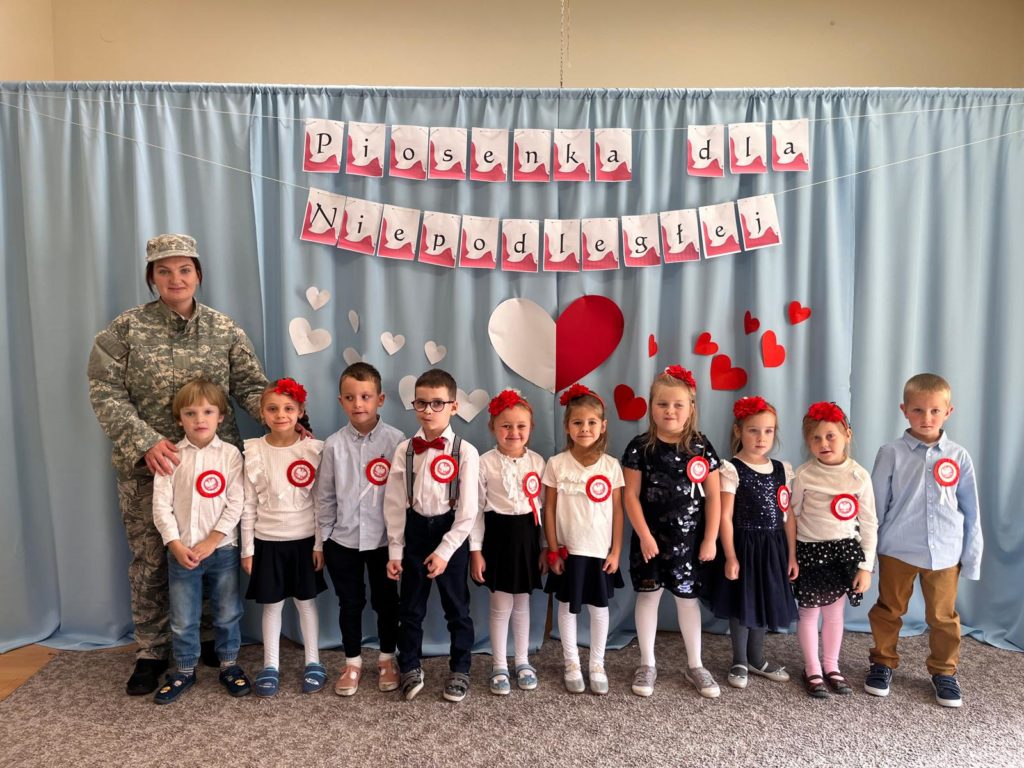 Każda grupa przedszkolna przygotowała występ z tej okazji. Mogliśmy wysłuchać i śpiewać takie pieśni jak: Wojenko, wojenko; Przybyli Ułani pod okienko, My pierwsza brygada, Szara Piechota.
